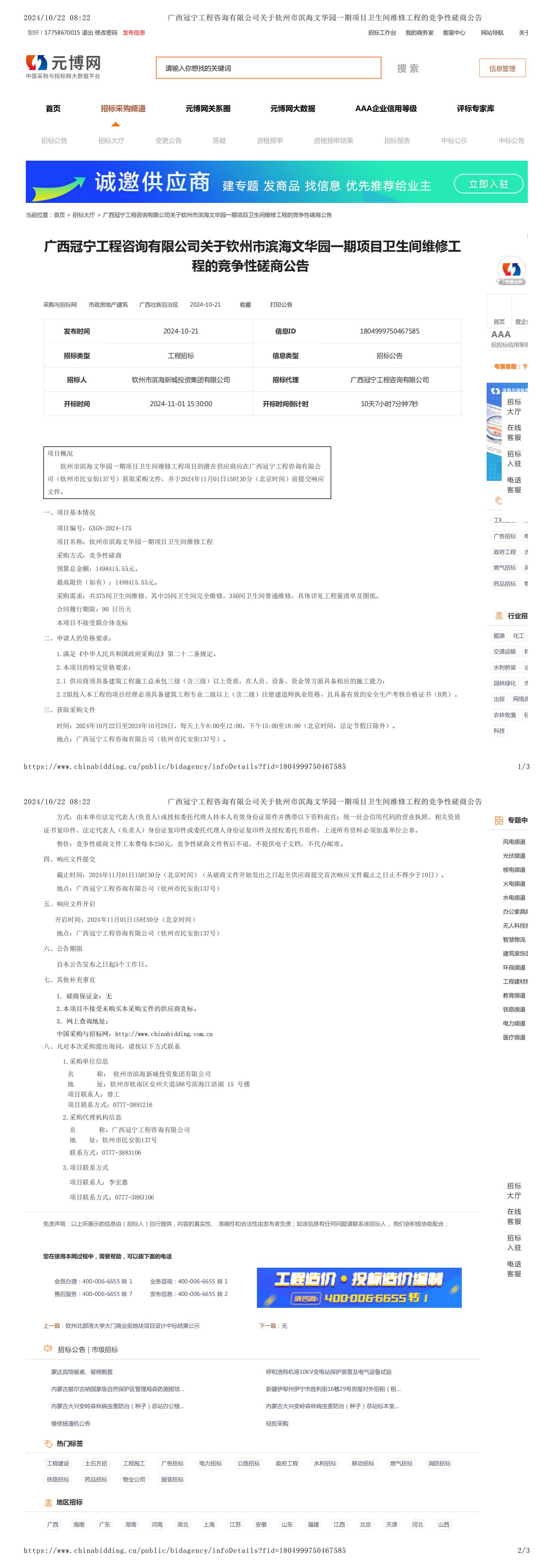 廣西冠寧工程咨詢有限公司關(guān)于欽州市濱海文華園一期項(xiàng)目衛(wèi)生間維修工程的競(jìng)爭(zhēng)性磋商公告