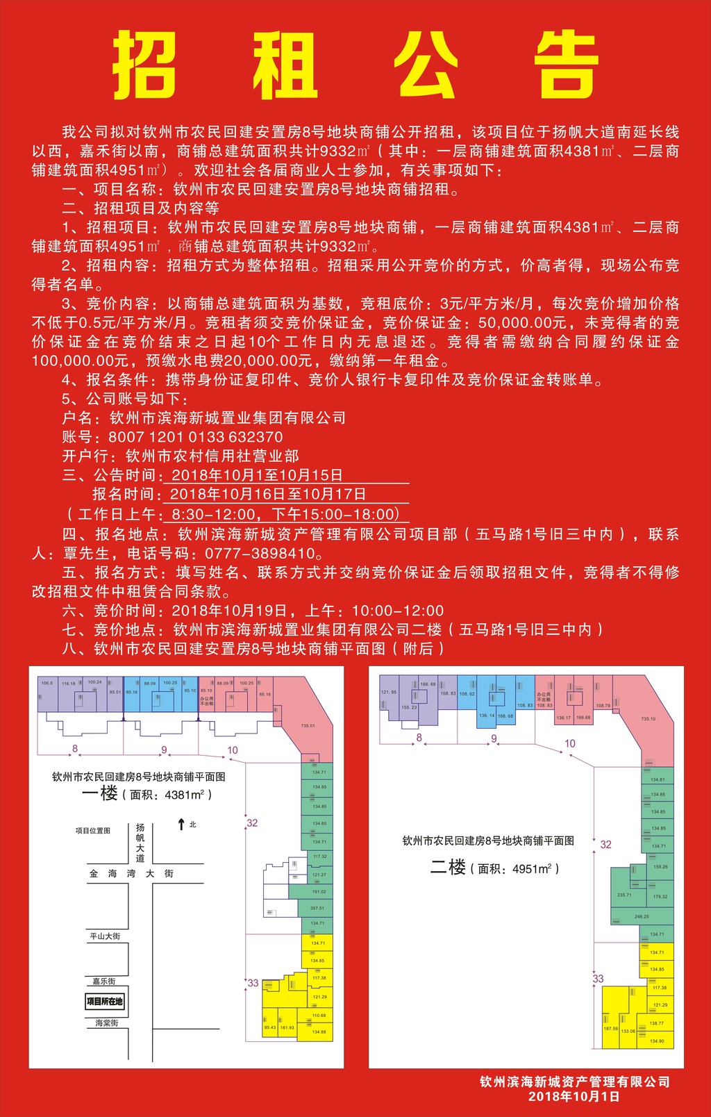 欽州濱海新城資產(chǎn)管理有限公司受欽州市濱海新城置業(yè)集團有限公司委托,對北部灣大學學生美食街進行公開招租,歡迎符合條件的競租人參加競租,現(xiàn)將有關事項公告如下: