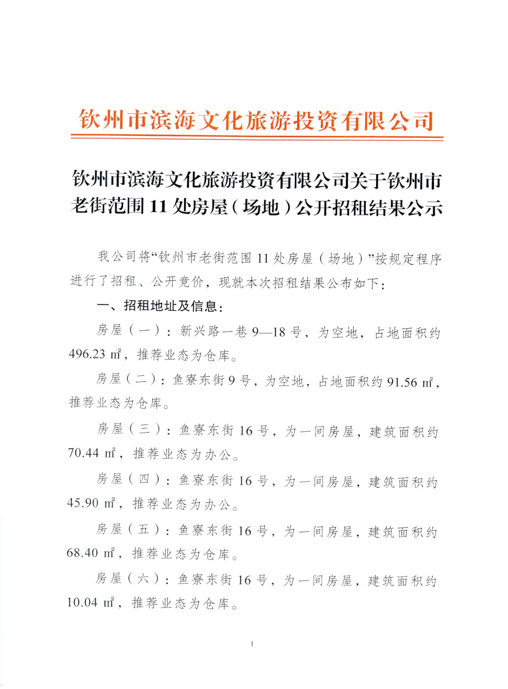 欽州市濱海文化旅游投資有限公司關于欽州市老街范圍11處房屋(場地)公開...