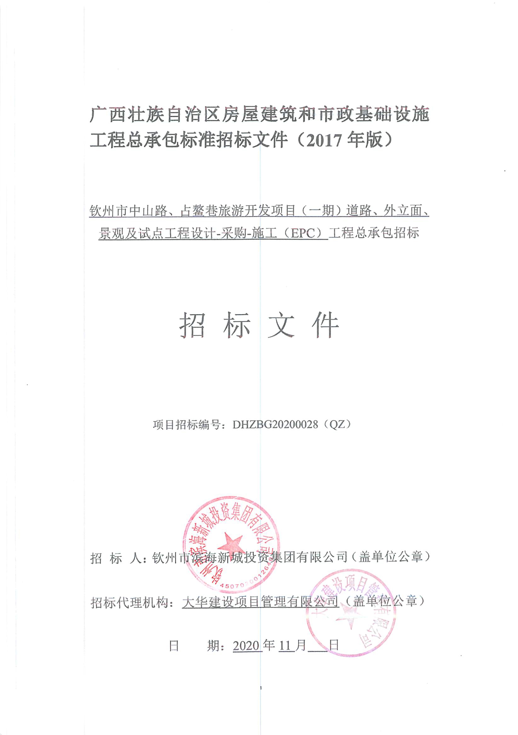 欽州市中山路、占鰲巷旅游開發(fā)項目(一期)道路、外立面、景觀及試點(diǎn)工程設(shè)...