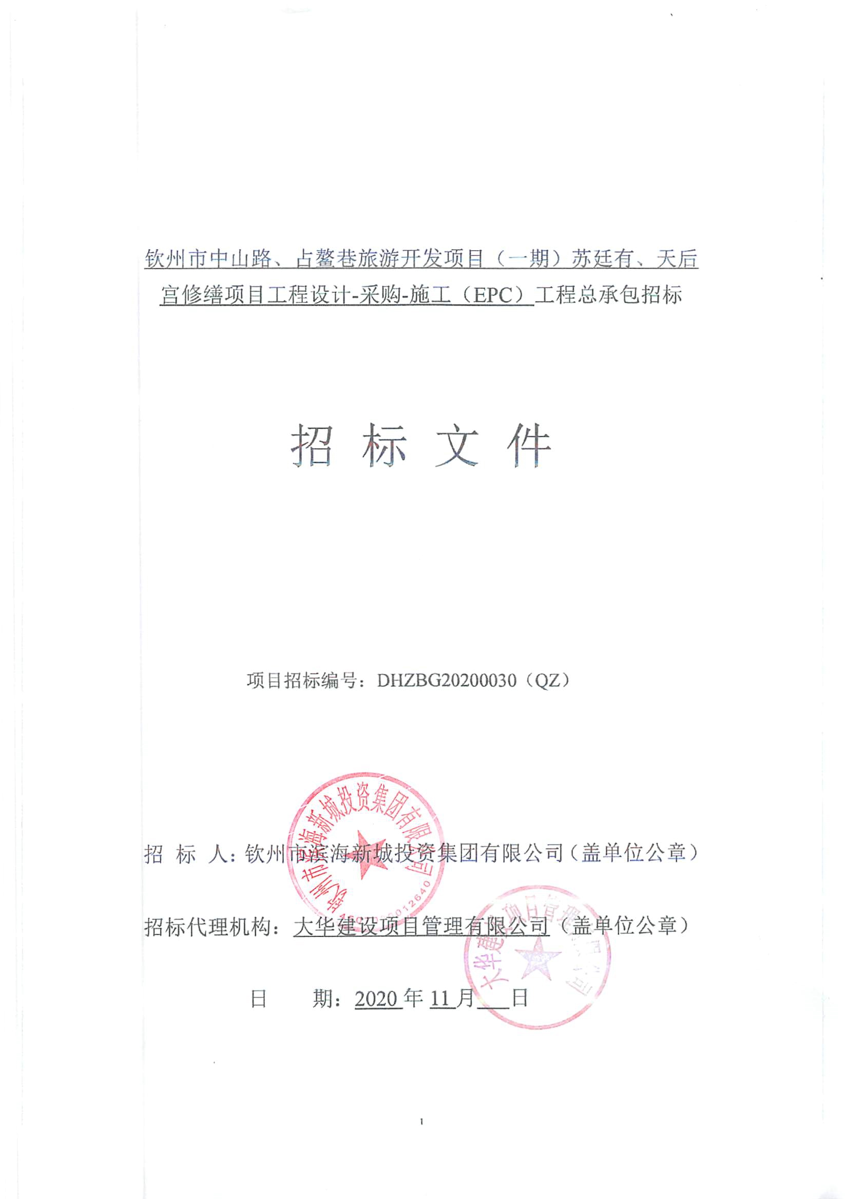 欽州市中山路、占鰲巷旅游開發(fā)項目(一期)蘇廷有、天后宮修繕項目工程設(shè)計...