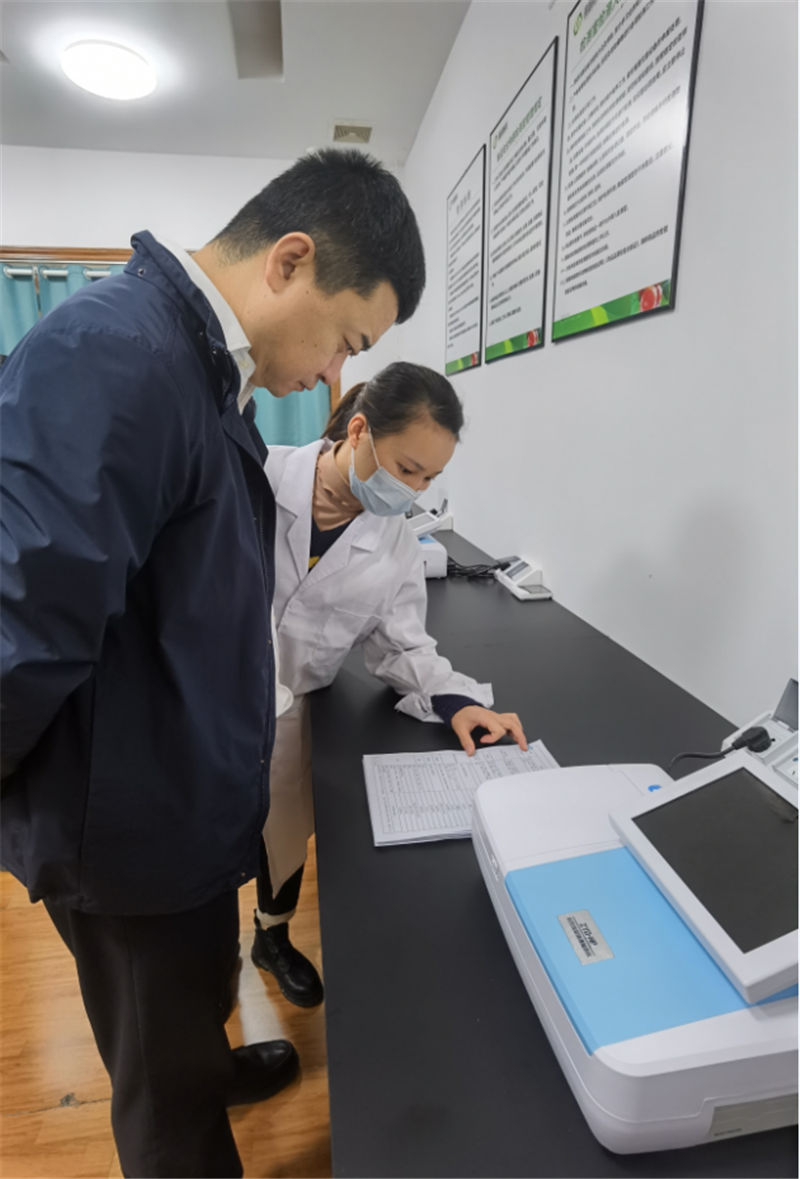 姚永福對基地檢測中心工作人員進行詳細詢問并查看相關(guān)檢測資料