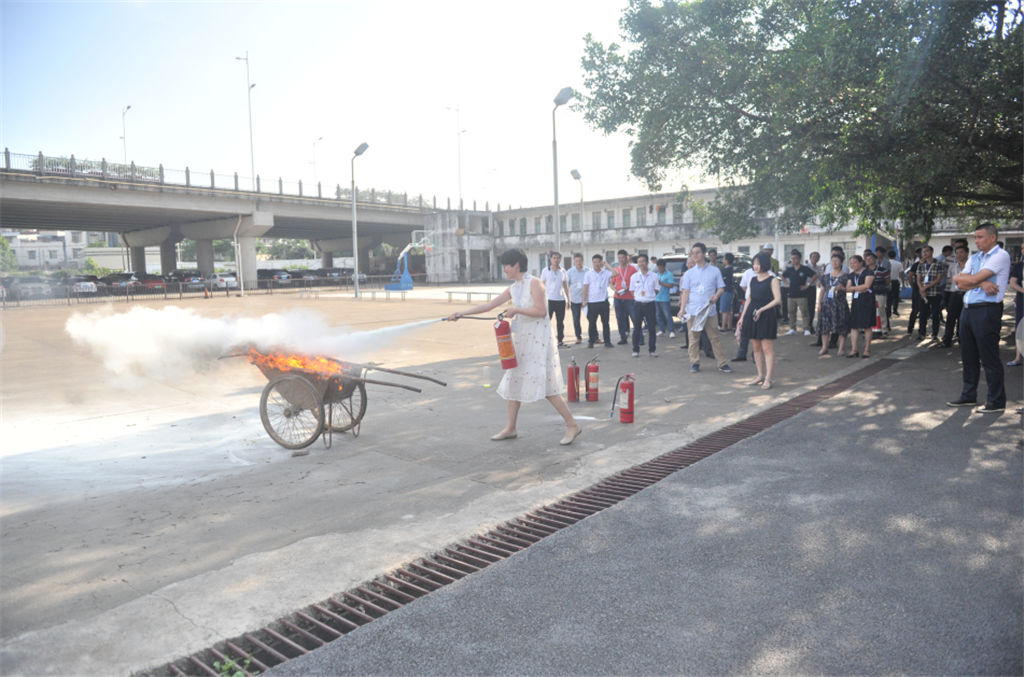 授課后,在張教官帶領(lǐng)下開展了人員密集公共場所疏散及滅火器操作的實(shí)物演練。