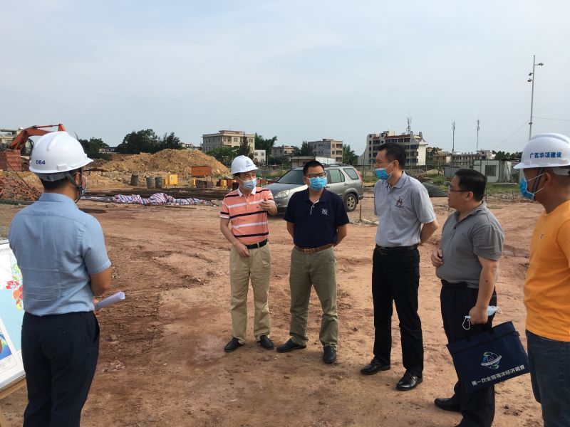 莫錦榮(左二)在項目工地現(xiàn)場聽取工作匯報 5月27日,市委常委、組織部部長......