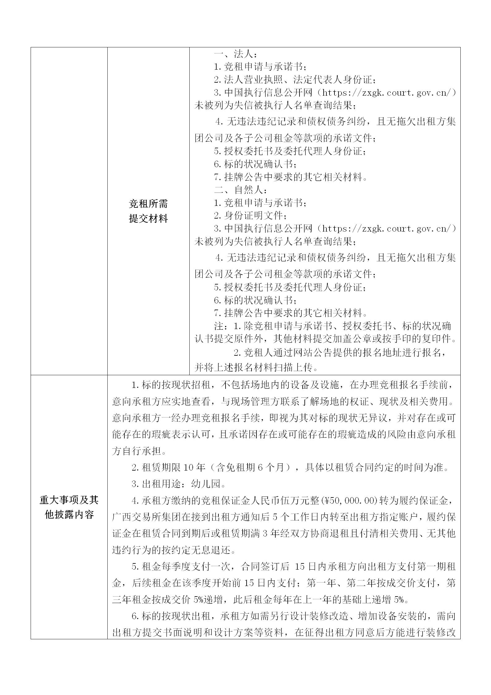 欽州市安惠一園幼兒園資產(chǎn)出租項目公告內(nèi)容(公共資源)