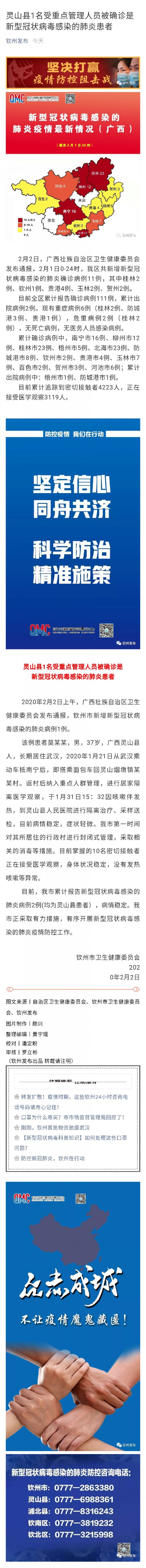 靈山縣1名受重點(diǎn)管理人員被確診是新型冠狀病毒感染的肺炎患者