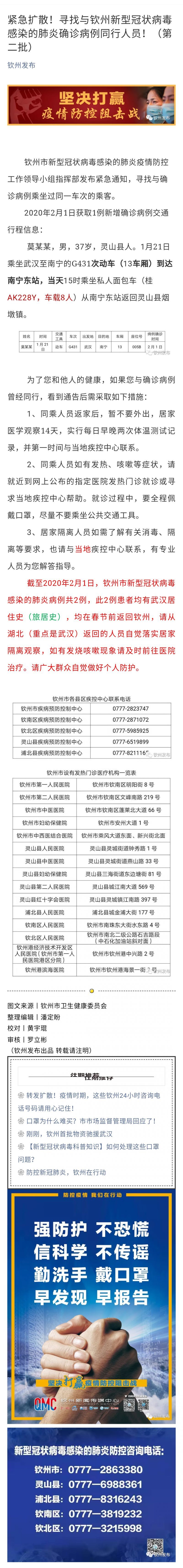 緊急擴(kuò)散!尋找與欽州新型冠狀病毒感染的肺炎確診病例同行人員!(第二批)