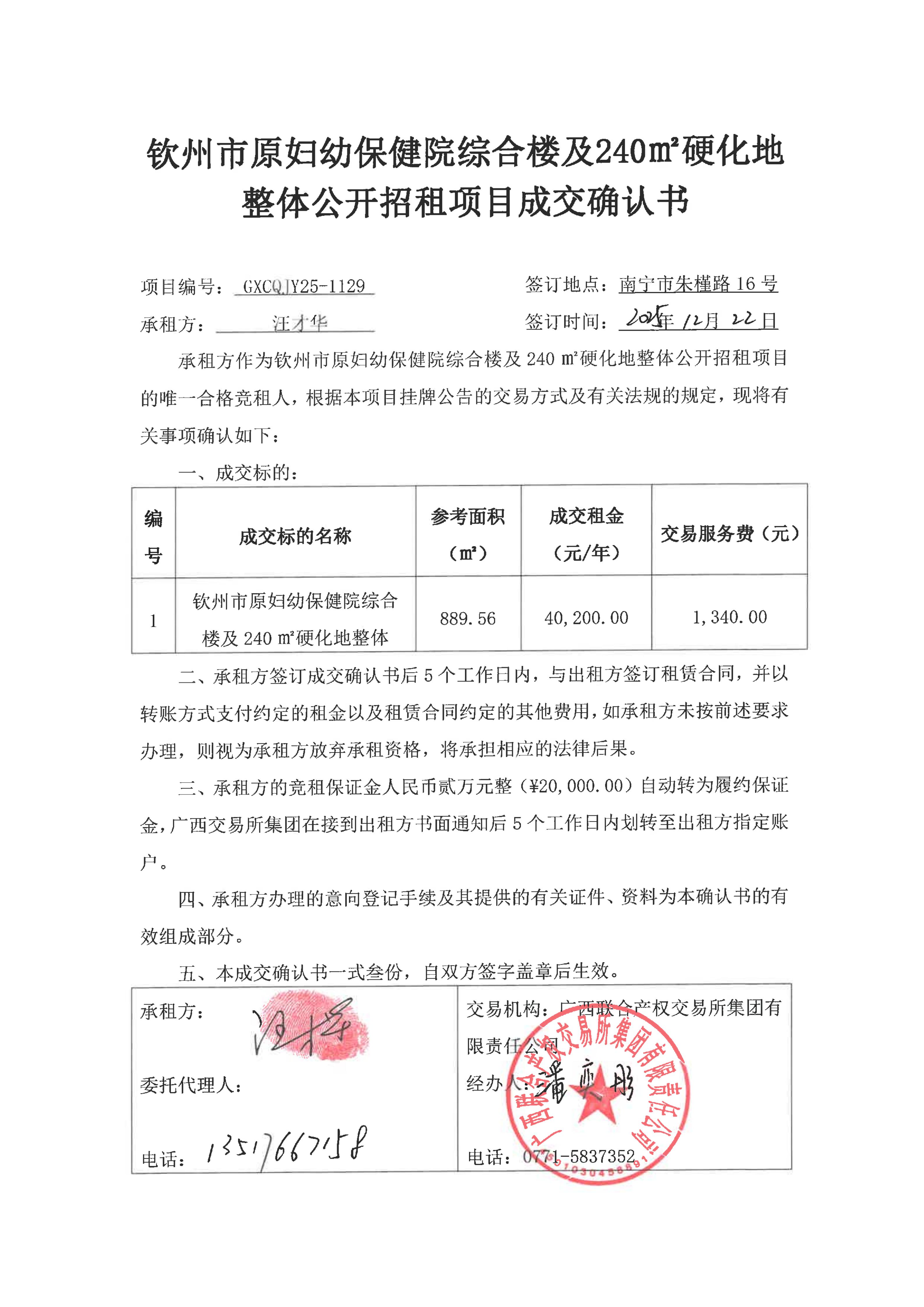 欽州市家興苑六區(qū)、家興苑七區(qū)、安惠二園 共11間商鋪公開招租項目成交確認書