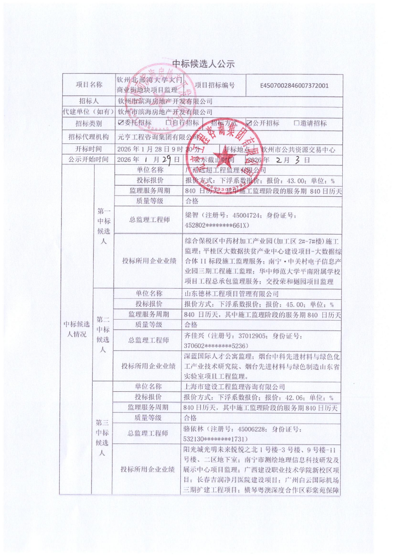欽州北部灣大學(xué)大門商業(yè)街地塊項目中標(biāo)候選人公示