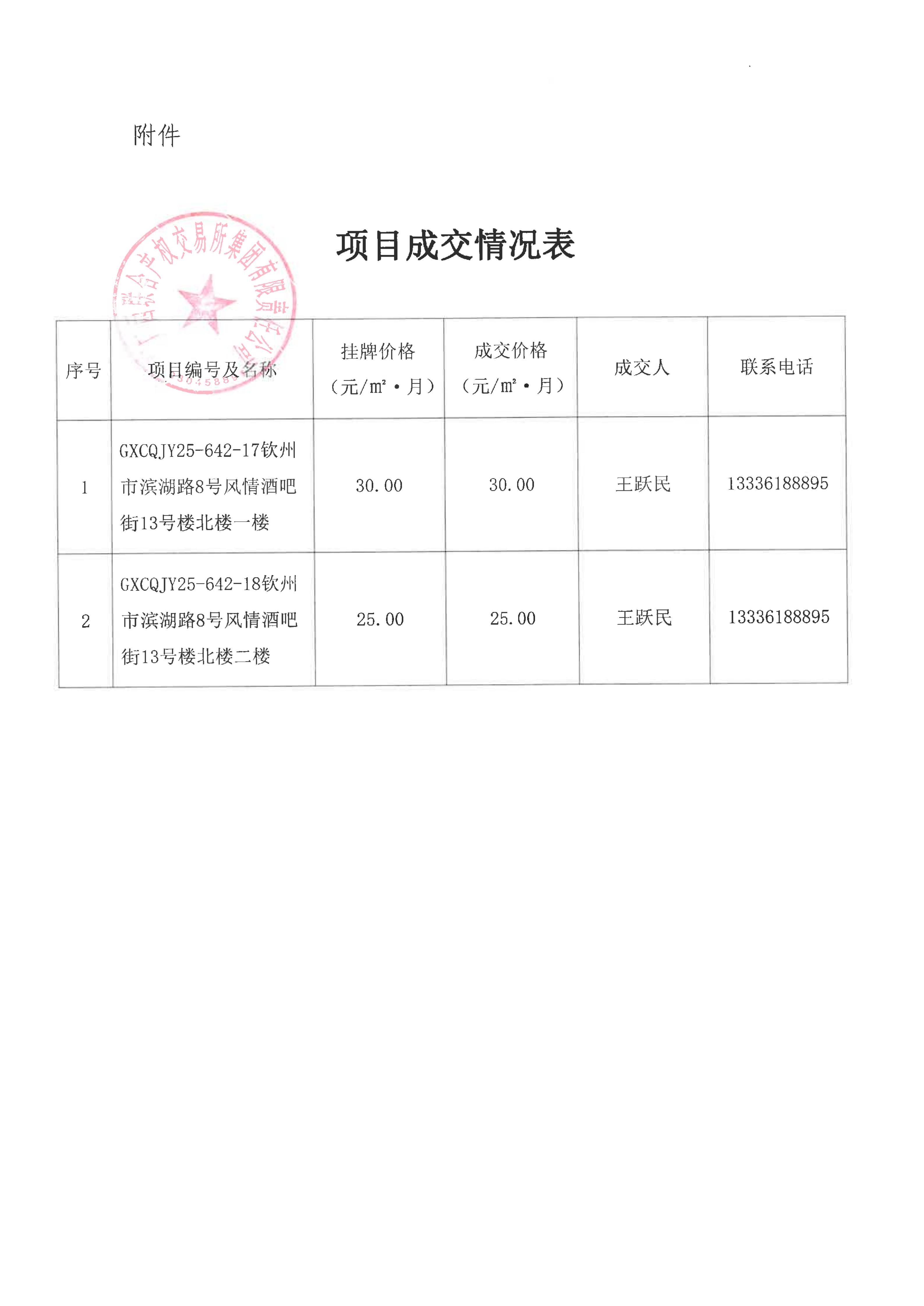 關(guān)于欽州市濱湖路8號風(fēng)情酒吧街(蘭亭街)房屋公開招租項(xiàng)目成交情況的函(13北)