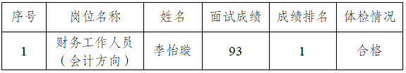 根據(jù)集團(tuán)公司2024年8月13日發(fā)布的《欽州市濱海新城投資集團(tuán)有限公司招聘公告》,經(jīng)報名、資格審查、面試、考察、體檢等程序,經(jīng)集團(tuán)公司黨委研究決定,現(xiàn)對欽州市濱海投資集團(tuán)有限公司財務(wù)工作人員(會計方向)崗位擬聘用人選予以公示。