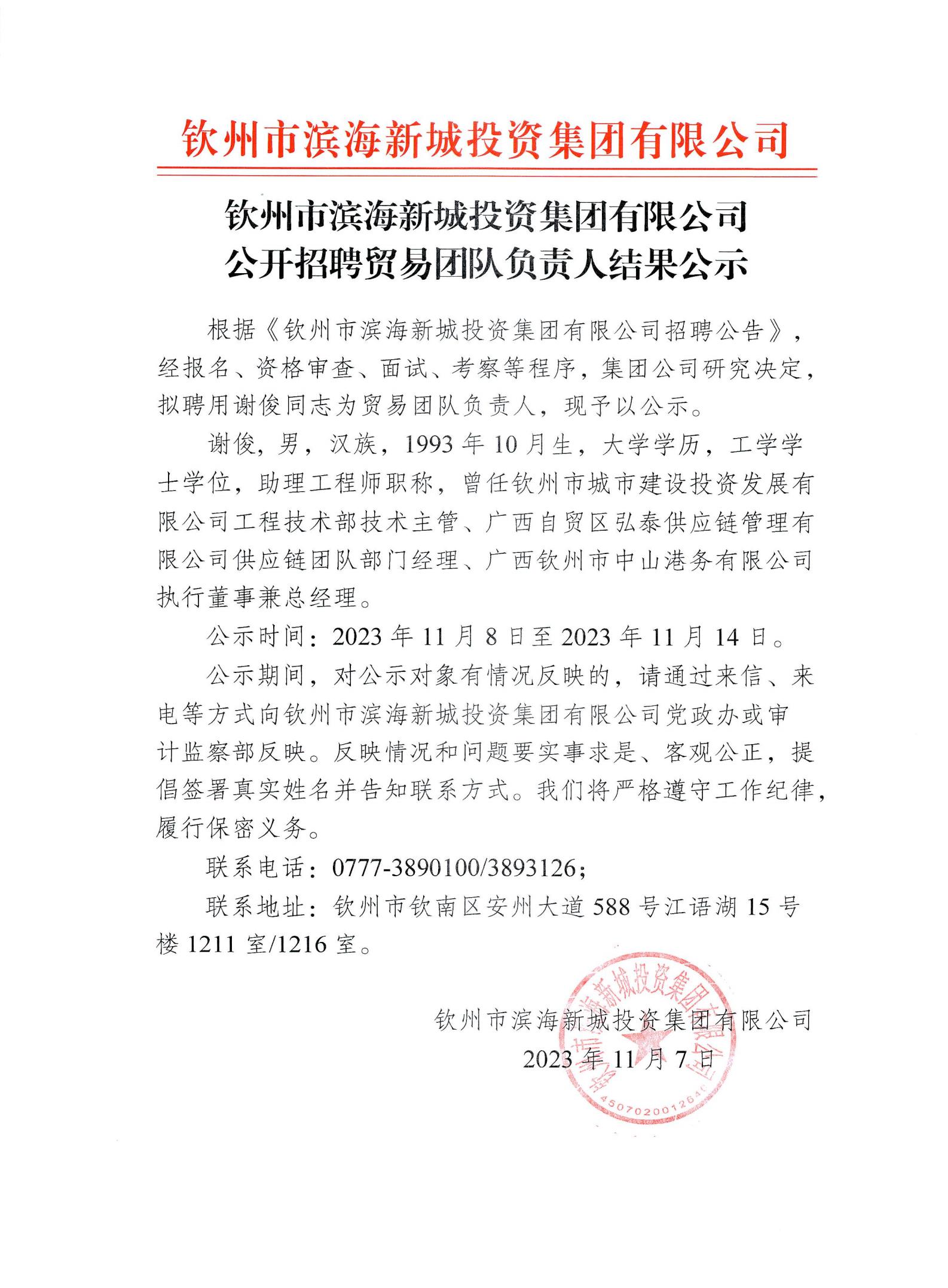 公開招聘貿(mào)易團(tuán)隊(duì)負(fù)責(zé)人結(jié)果公示