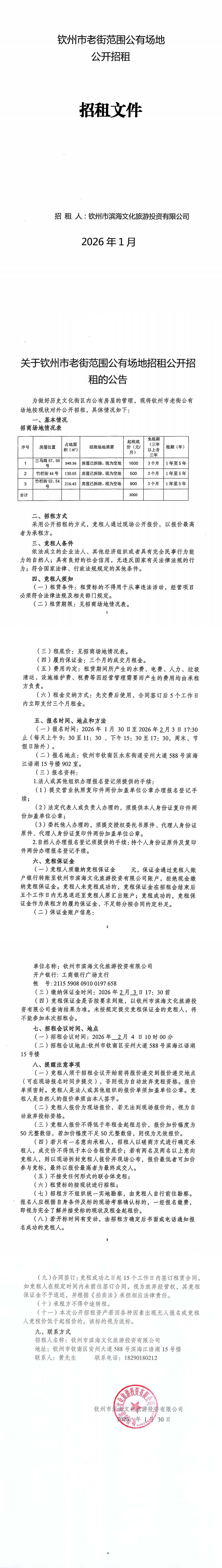 關(guān)于欽州市老街范圍公有場地招租公開招租的公告