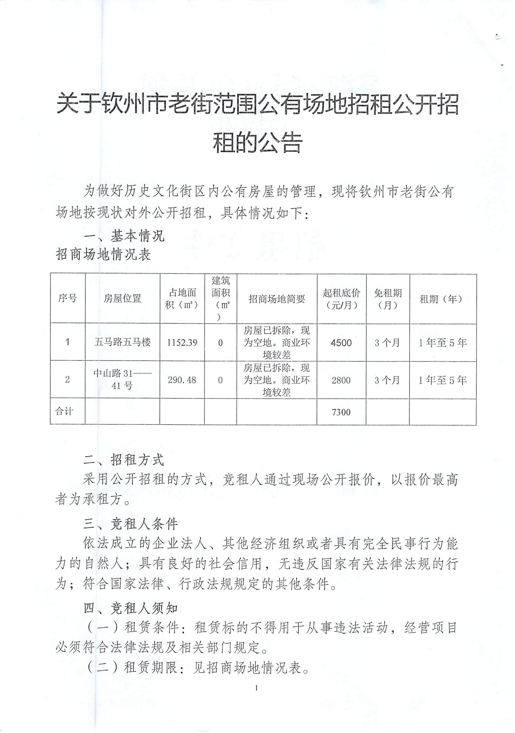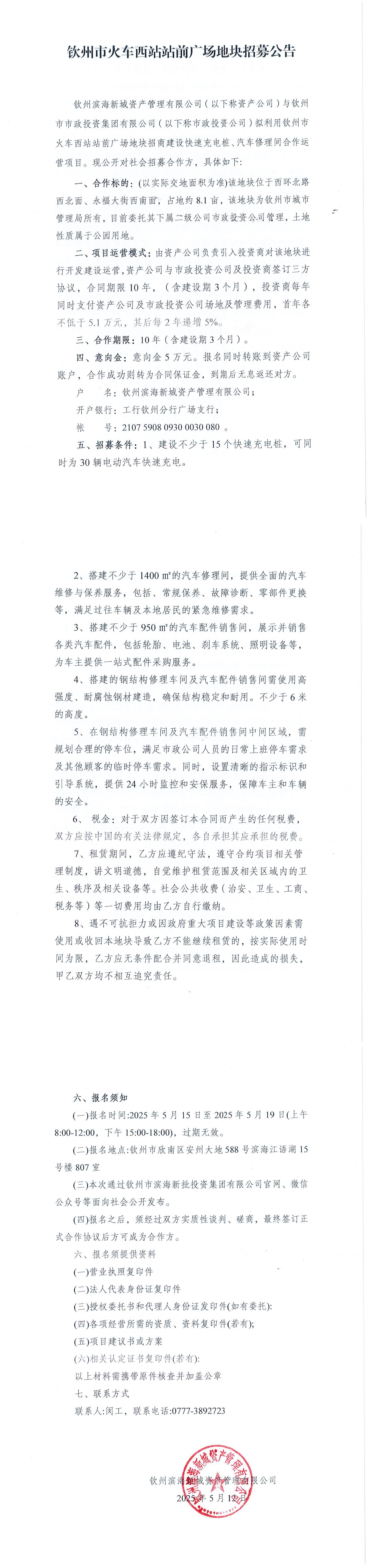 欽州濱海新城資產(chǎn)管理有限公司旺鋪及地塊對外招租公告