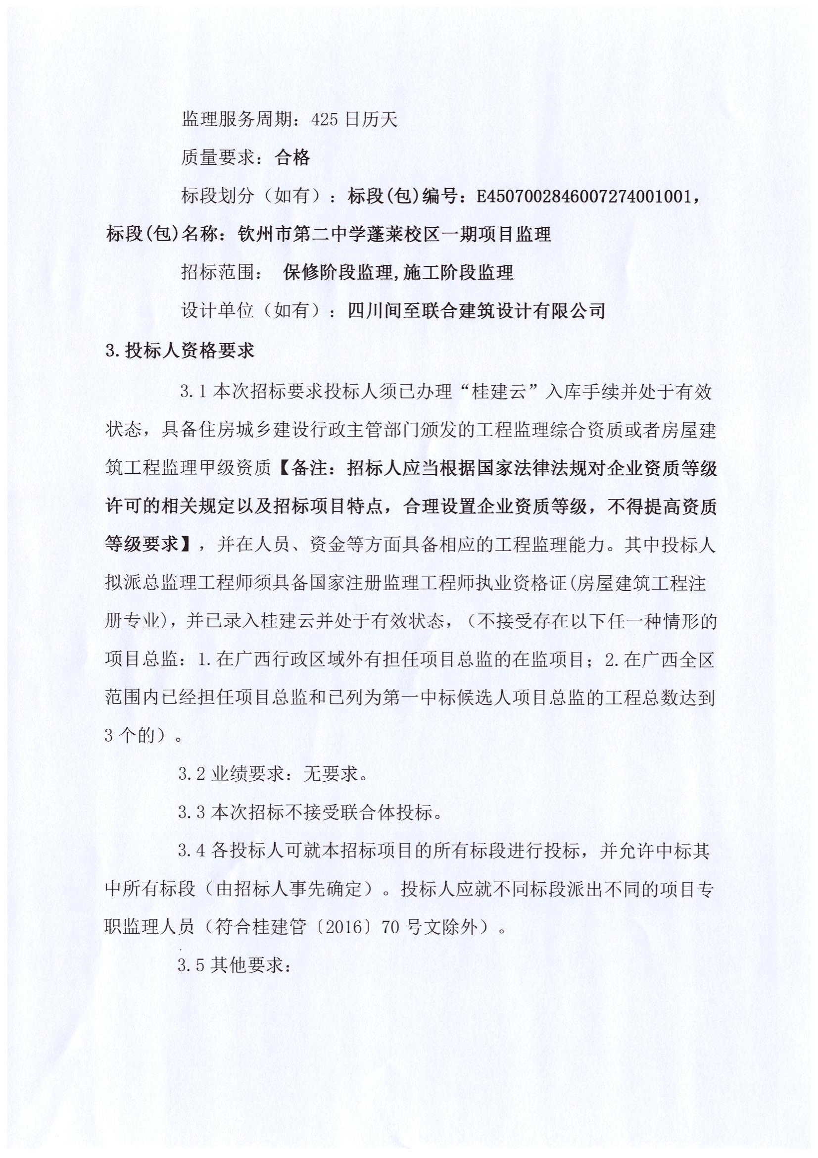 欽州市第二中學(xué)蓬萊校區(qū)一期項目監(jiān)理招標(biāo)公告